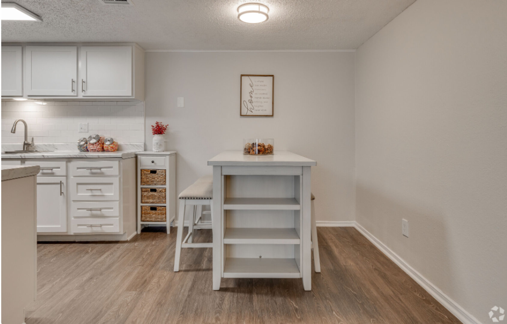 Spacious Two Bedroom Two Bathroom apartment home featuring vaulted ceiling, walk in closets, private balcony, washer/dryer and renovated finishes. Renovations include new appliances, LED fixtures, and white shaker style cabinets!
