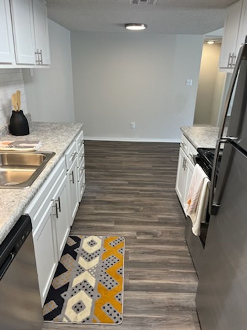 Spacious Two Bedroom Two Bathroom apartment home featuring vaulted ceiling, walk in closets, private balcony, washer/dryer and renovated finishes.  Renovations include new appliances, LED fixtures, and white shaker style cabinets!