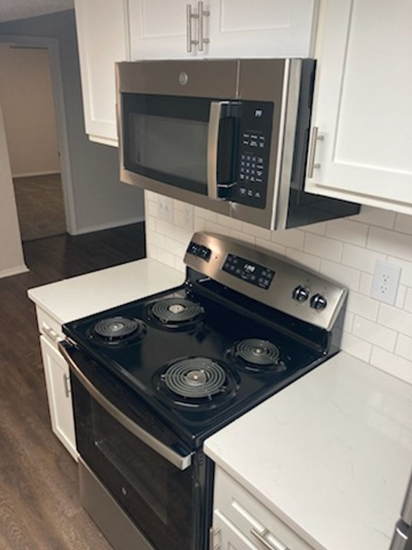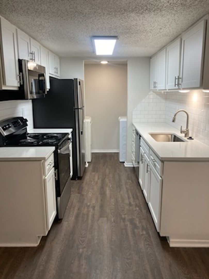 Three bedrooms, two bathrooms, on the first floor including the washer/dryer with tons of storage, open floorplan, private patio and plank wood flooring! Renovated finishes include new LED light fixtures, new stainless appliances, new countertops, tile backsplash and white shaker style cabinets! This is it!!!